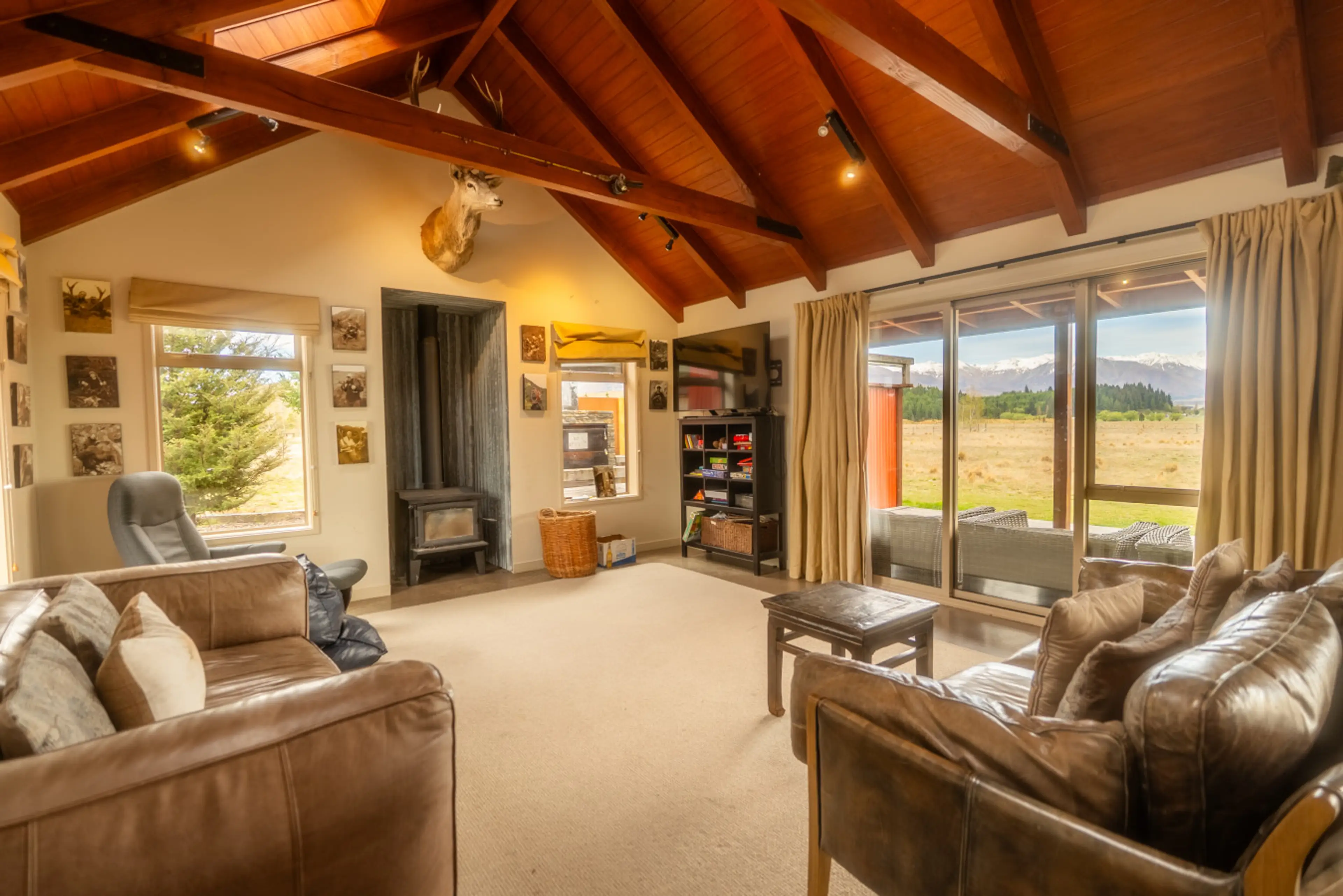 Near new very comfortable House, just outside of Twizel. Beautiful 360o views. 3 bedrooms, 2 toilets, bathroom with shower and bath. Separate sleep out with Queen size bunk beds and single bed. Large open plan kitchen, lounge, dining all with concrete floor that opens out onto large deck. Styled as ...